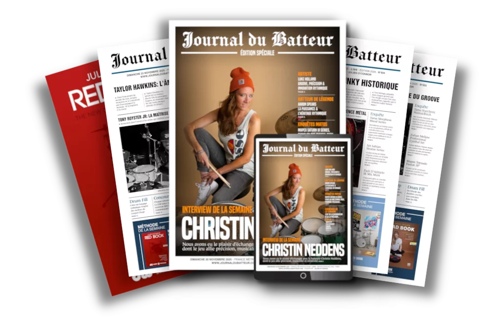 Profitez de l’offre de lancement du Journal du Batteur : abonnement annuel à 59,90€ au lieu de 150,80€. En décembre 2025, votre inscription inclut la méthode Red Book offerte ainsi qu’un accès VIP au Groupe Facebook Privé du “Journal du Batteur”. Rejoignez une communauté active, découvrez du contenu exclusif et progressez chaque semaine. Offre limitée à ne pas manquer !